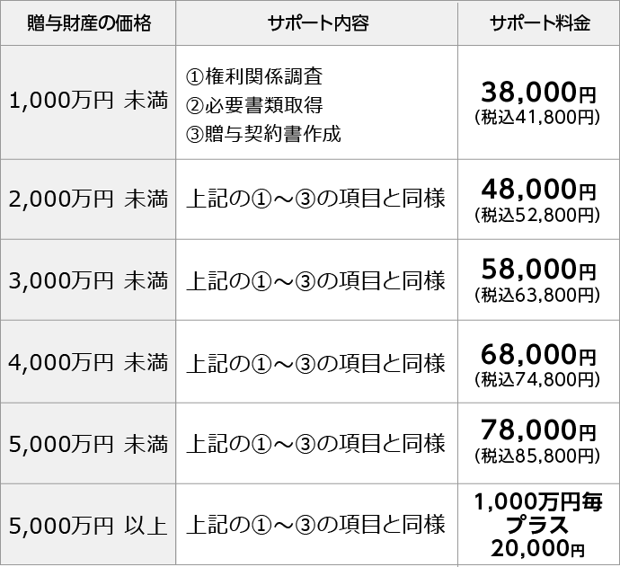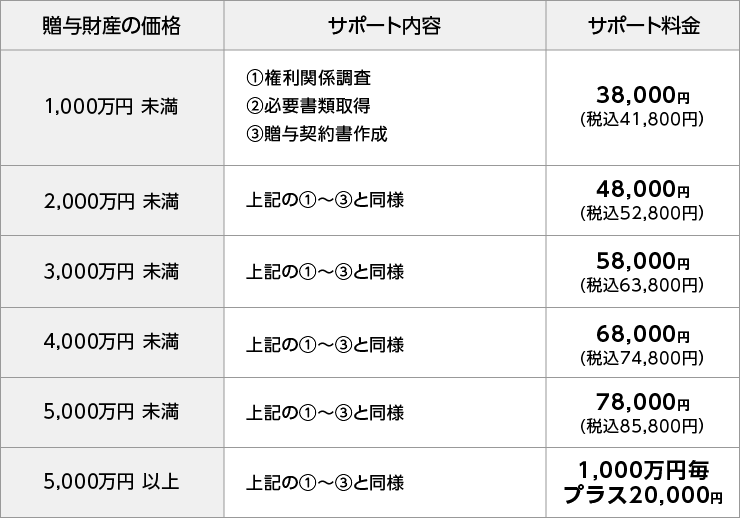 贈与者と受贈者との間で契約書を作成したうえで贈与契約を結び、贈与が確実であることを証明します。専門家による契約書の厳格なチェックが入るため、税務署から贈与を否定されることはありません。